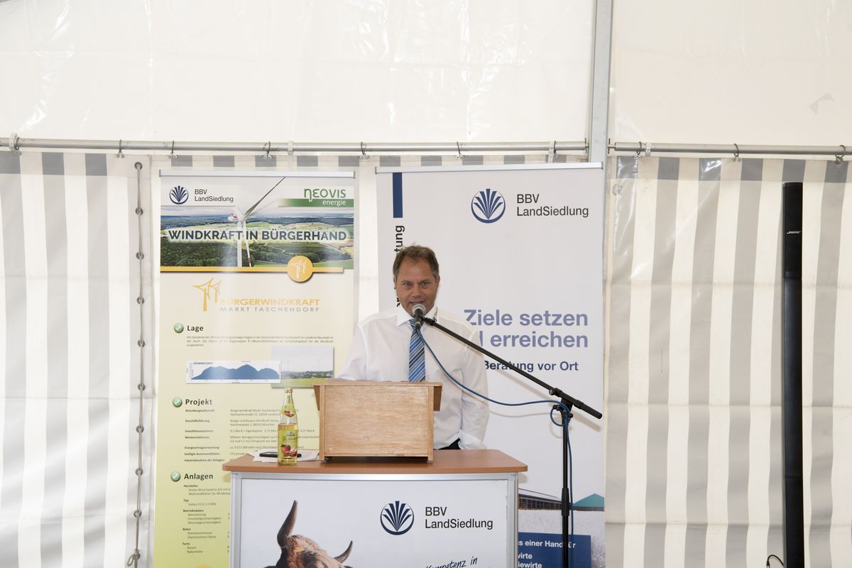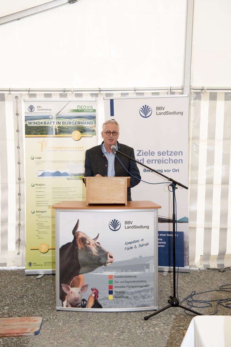 Unter dem Motto „In der Region, für die Region“ machen 113 Kommanditisten der Bürgerwindkraft Markt Taschendorf GmbH & Co KG die 9,1-Millionen-Euro-Investition zu einem beispielhaften Bürgerbeteiligungsmodell und - laut Franz Stemmer, Geschäftsführer der BBV LandSiedlung - zu einem „Leuchtturmprojekt, das weit über die Region hinaus strahlt“.